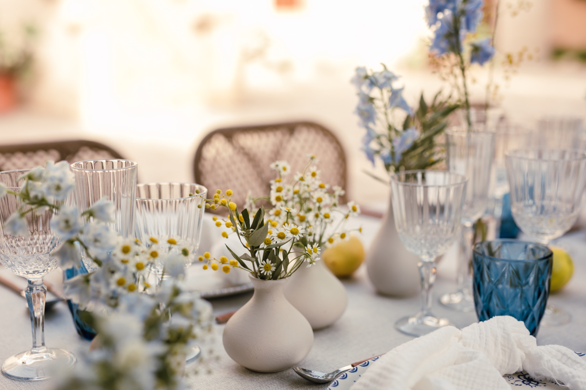 El azul del mar, el amarillo del sol y los colores nude de la tierra son representación del estilo mediterráneo que caracteriza el sueño de las bodas mediterráneas en Alicante.